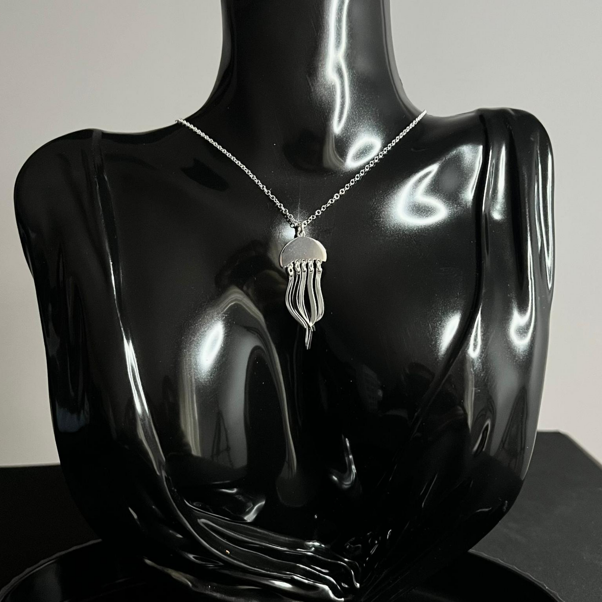El collar Medusa Mística fusiona arte y mito en una pieza única. Inspirado en la figura enigmática de la medusa, su silueta alargada y detallada evoca movimiento y fuerza interior. Una joya de diseño audaz, perfecta para quienes buscan destacar con estilo propio y un aire de misterio sofisticado.