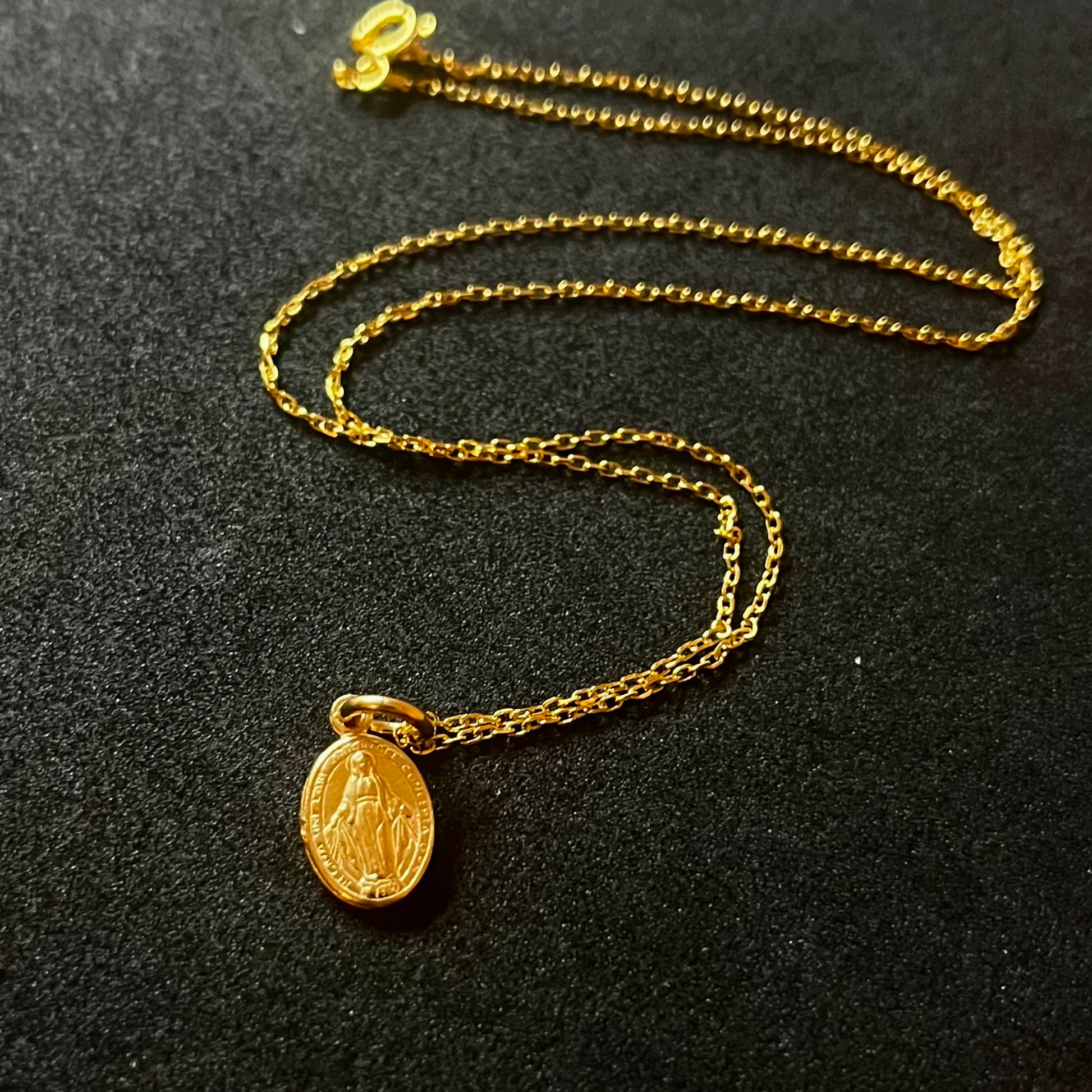 Collar en plata de ley 925 con baño de oro 18k y placa con virgen