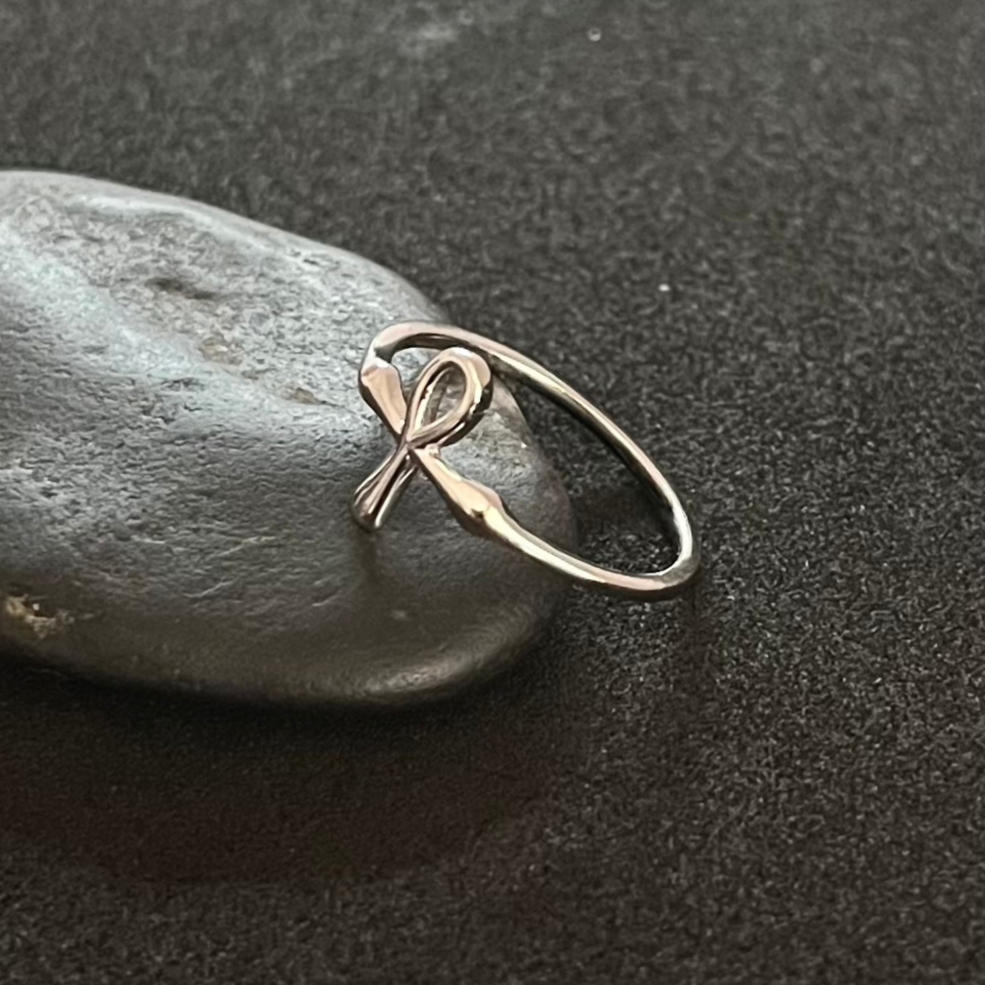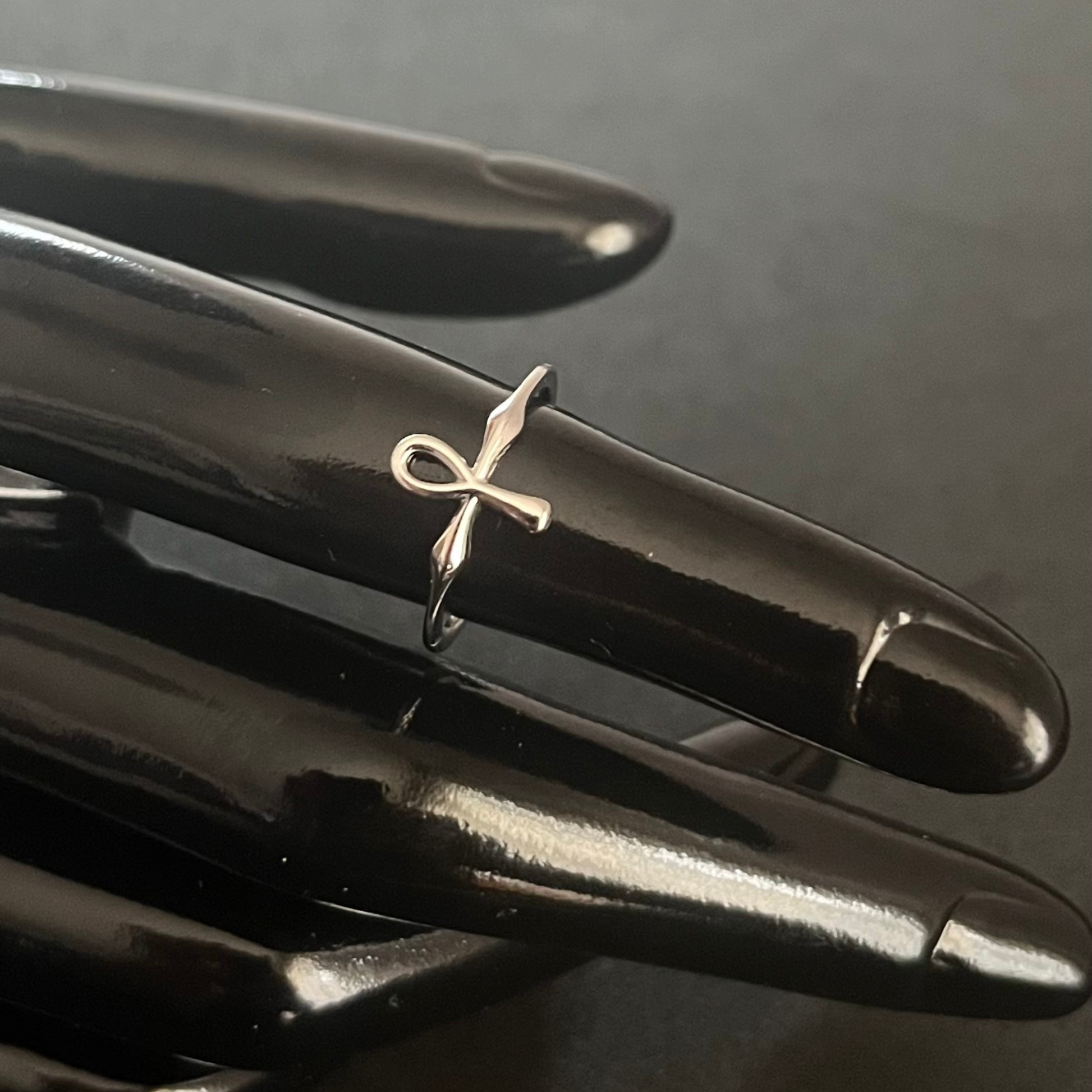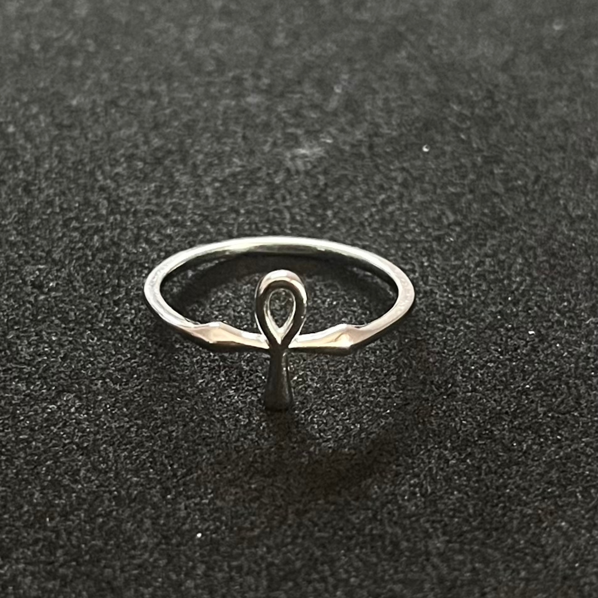 Anillo en plata de ley 925 rodiada con diseño del símbolo Ankh.