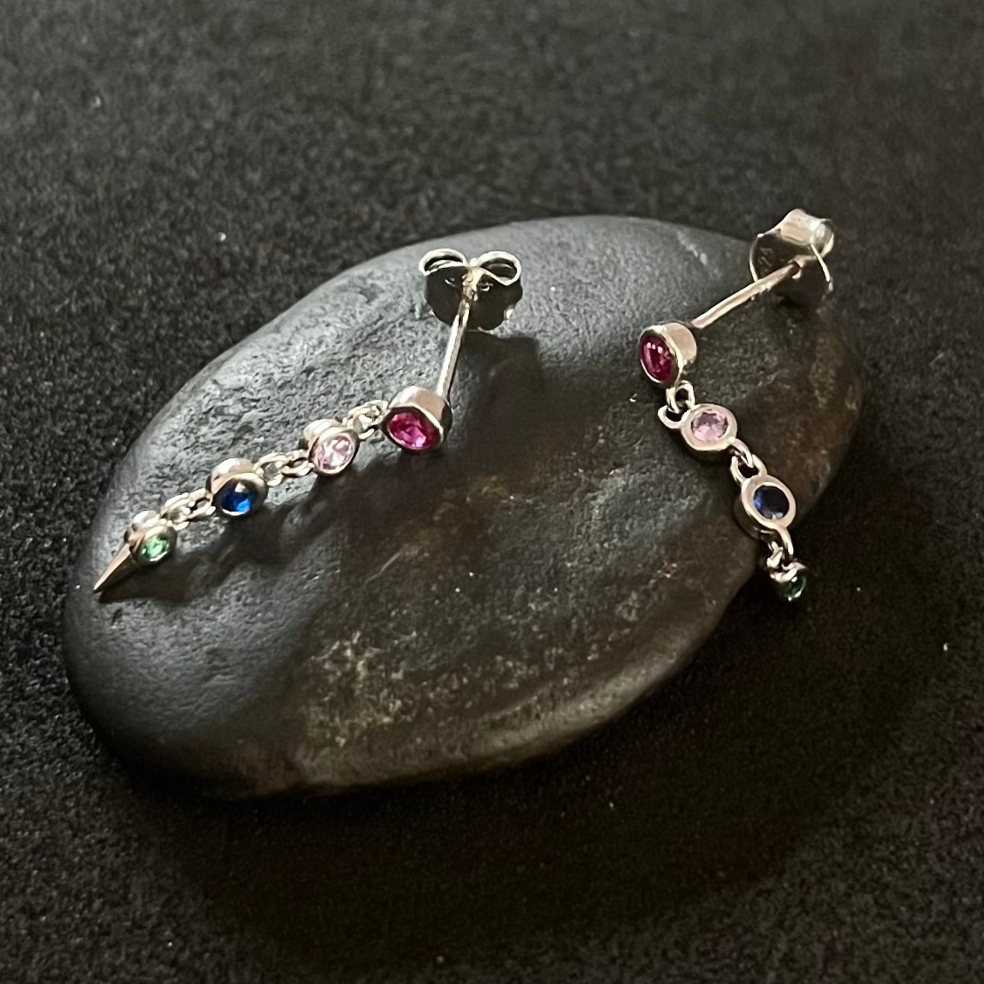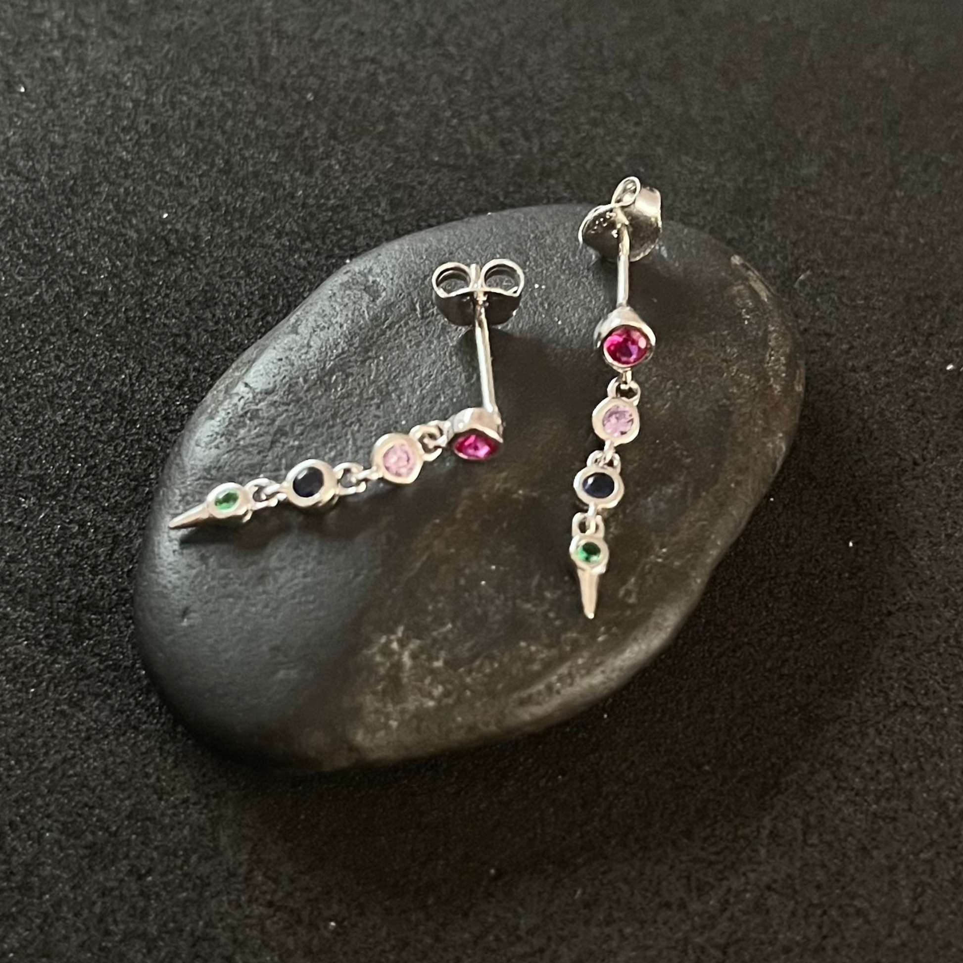 Los pendientes Éclat Prisma destilan energía, color y sofisticación. Presentan una delicada cascada de circonitas multicolor que capturan la luz en destellos. Su diseño alargado realza la elegancia del rostro con un brillo moderno y vibrante.