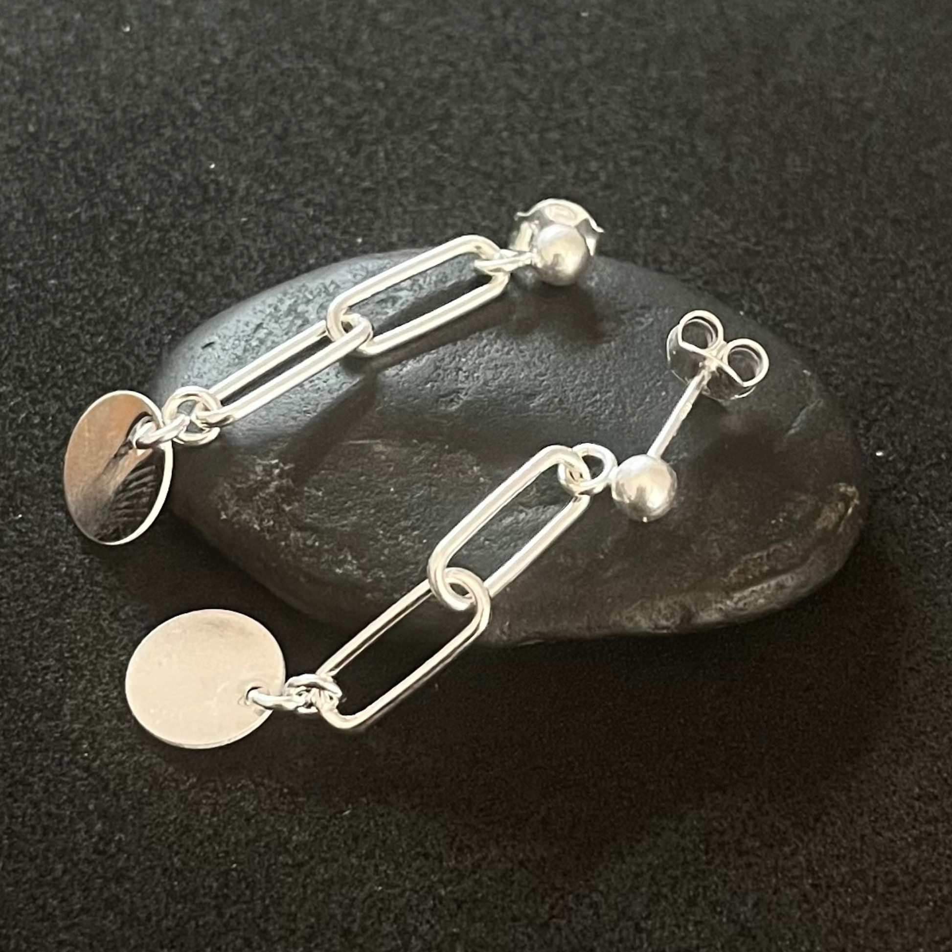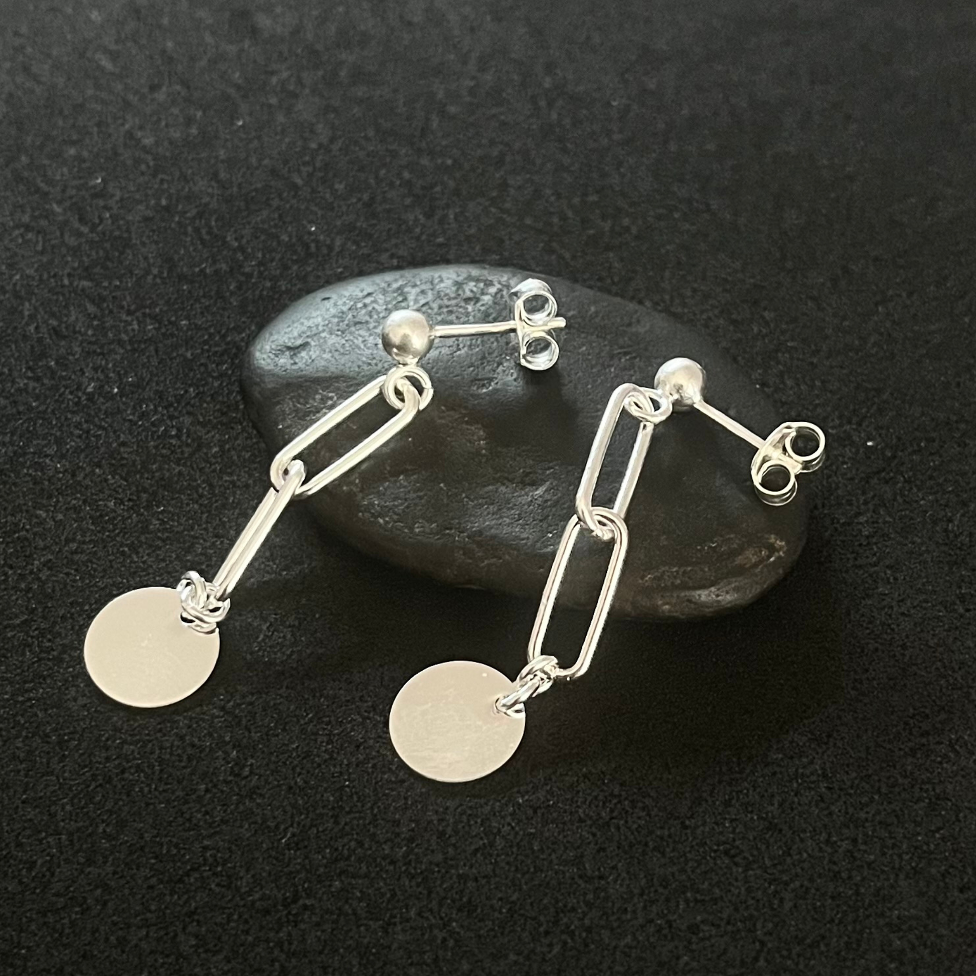 Los pendientes Eco Moderno fusionan diseño vanguardista y simplicidad refinada. Presentan eslabones alargados que culminan en un delicado disco pulido, símbolo de equilibrio y estilo contemporáneo. Su silueta ligera y geométrica aporta movimiento y sofisticación, ideal para quienes aprecian la elegancia en su forma más moderna.