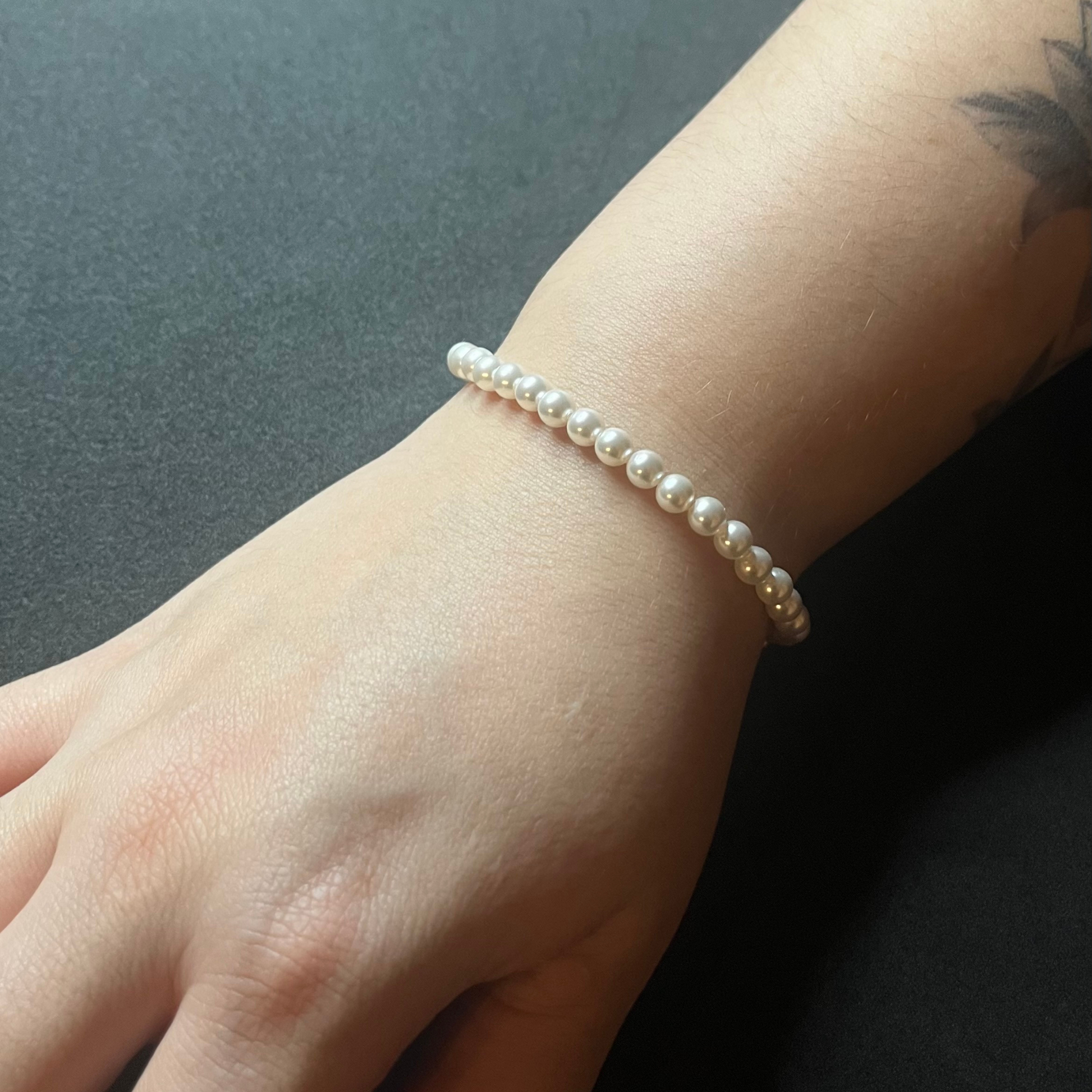 Pulsera con perlas de cristal austriaco y cadena en plata 925 bañada en oro de 18K.