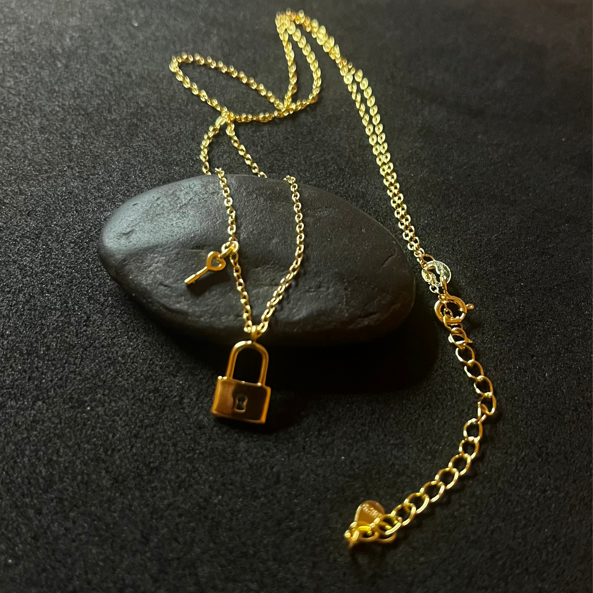 El collar Tesoro Oculto simboliza los secretos más preciados y la elegancia del misterio. Un delicado candado acompañado de una llave, ambos suspendidos de una fina cadena que aporta brillo y movimiento. Su diseño minimalista con toque simbólico evoca protección, amor y confianza.