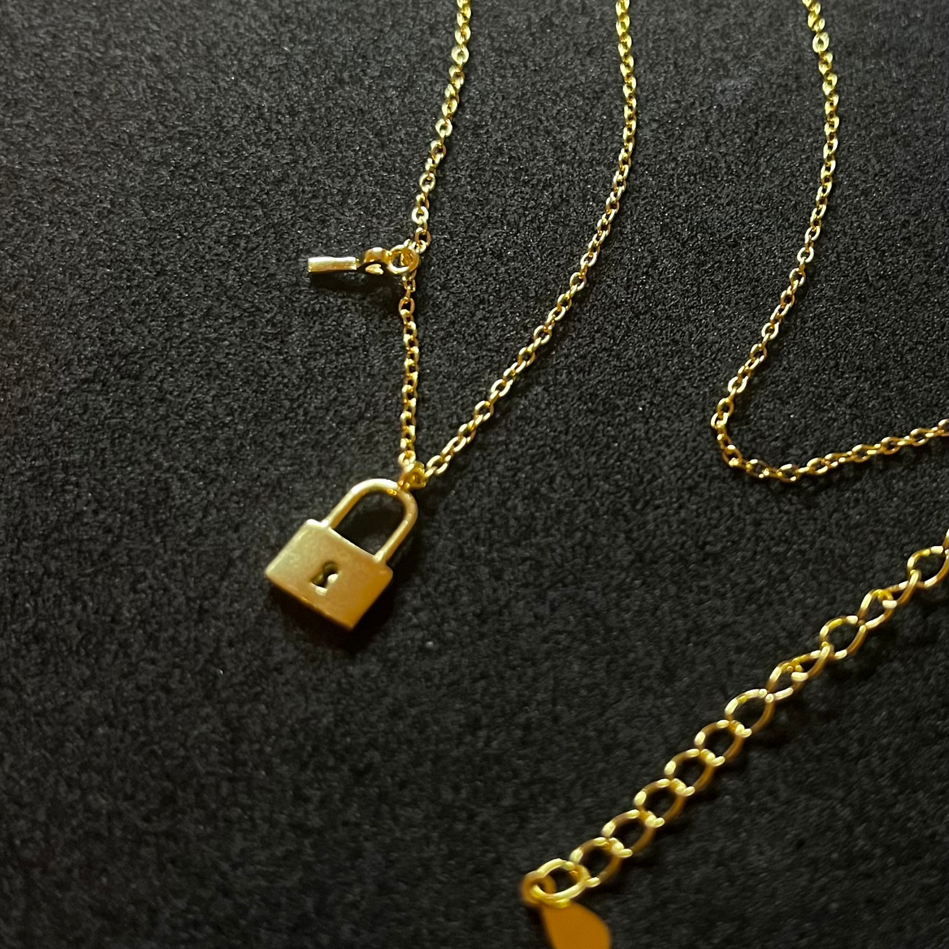 Collar en plata de ley 925 con baño de oro 18k con candado
