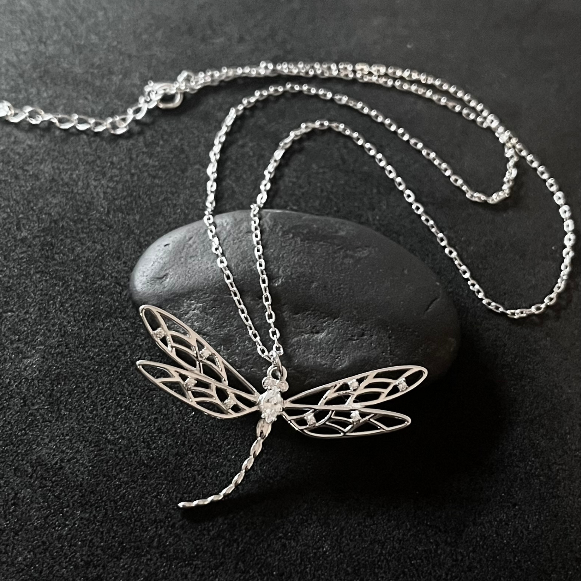 Collar en plata de ley 925 rodiada con libélula
